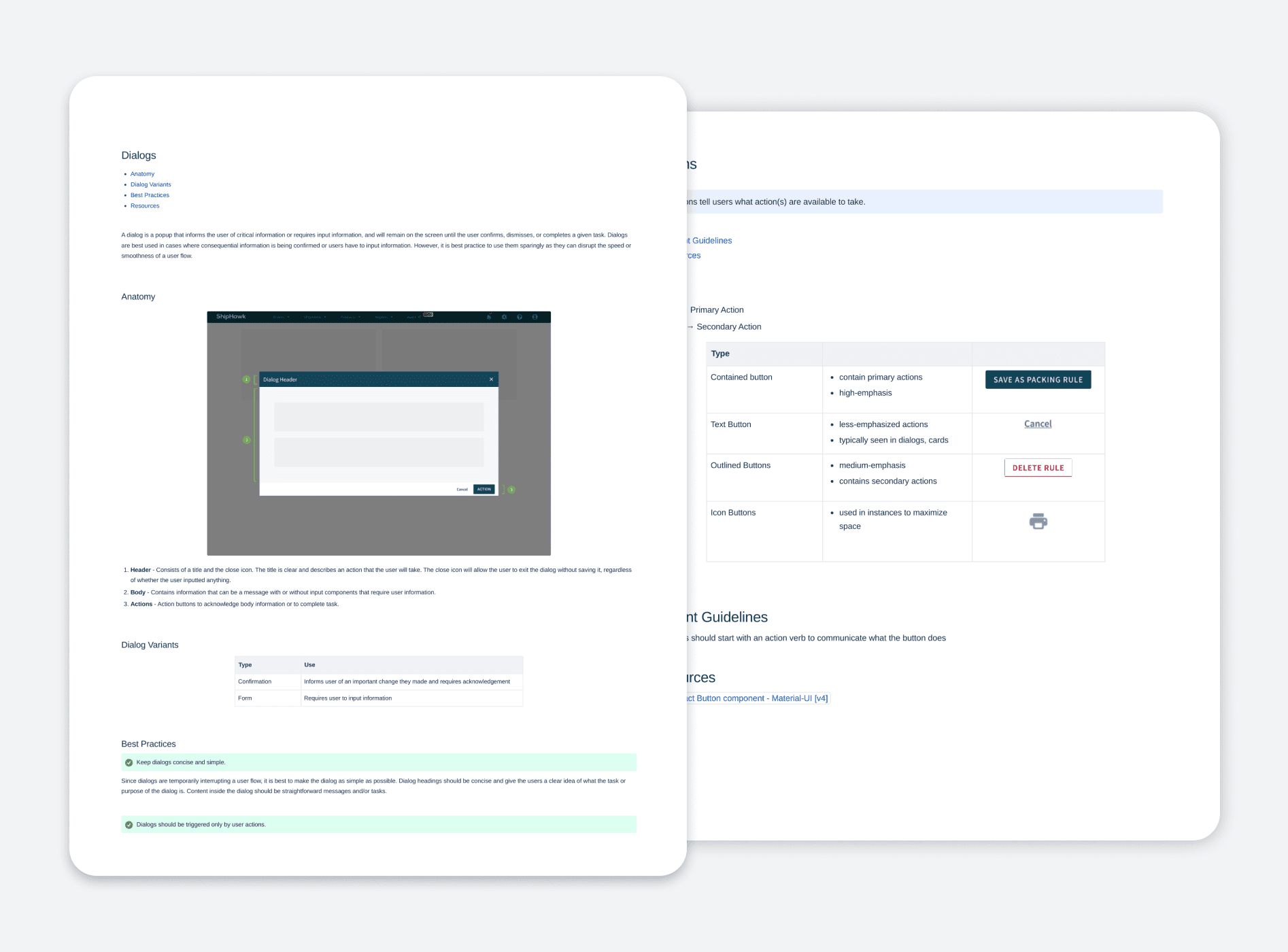 Design system documentation isn’t just about recording the current components and workflows have, but also how to maintain the design system. As the company continues growing, so will the system.